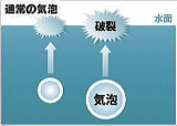 ジェットバスなどの通常の泡は生成された後水面に浮上後破裂するだけです