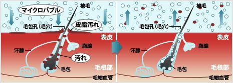 マイクロバブルとは? ![]() 直径が約2〜3ミクロンの微細な泡の事で マイナス電符を帯びているので汚れを吸着する性質があります。 ジェットバスなどの通常の泡は生成された後水面に浮上後破裂するだけです マイナスイオンを帯びたマイクロバブルはプラスイオンを持つ汚れと結びついて浮上しながら 水中で消滅し汚れを水面へ浮かび上がらせます ![]() マイクロバブルウォッシュシステムとは? 犬の毛穴の大きさは約20〜30ミクロン対して マイクロバブルの直径は2〜大きくても10ミクロン程度です。 この微細な泡(マイナスの電符を帯びた泡)が毛穴の内側に入り込み プラスイオンのウィルス、バクテリア、汚れを引き寄せて水中に分離します。 また一緒に入れる温浴剤に配合された幾つかの酵素が 毛穴をふさぐ皮脂を剥がし老廃物の分解を促進します ![]() マイクロバブルのHPはこちら マイクロバブルQ&A @料金は? 通常のシャンプーに温浴剤を入れた7〜15分の温浴を行いますので通常料金にプラス 小型犬1000円・中型犬1500円が必要です A安全性 マイクロバブルは泡ですので一切の刺激はありません また使用している温浴剤は獣医師との共同開発に2年を要しています 短期間で汚れを落とす事ができ目に入れても飲んでも害が無い事が証明されています B普通の泡とどれくらい違うのか 通常のバブリングでは100μm以下の気泡を生成することは不可能です マイクロバブルはこの10分の1以下の大きさ3〜5μm また通常の泡と違い水中で縮小し、消滅しますので汚れを浮かせます ※ちなみに1ミクロンは0.001ミリメートル マイクロバブルによる治療報告 ※医療的措置も行っています 3月6日 治療開始 ワンちゃんも飼い主さんもとても辛い毎日でした ![]() 4月15日 約六週間 かなりの改善が見られ回復への希望が出てきました ![]() 5月23日 2ヵ月半の治療の結果 ![]()